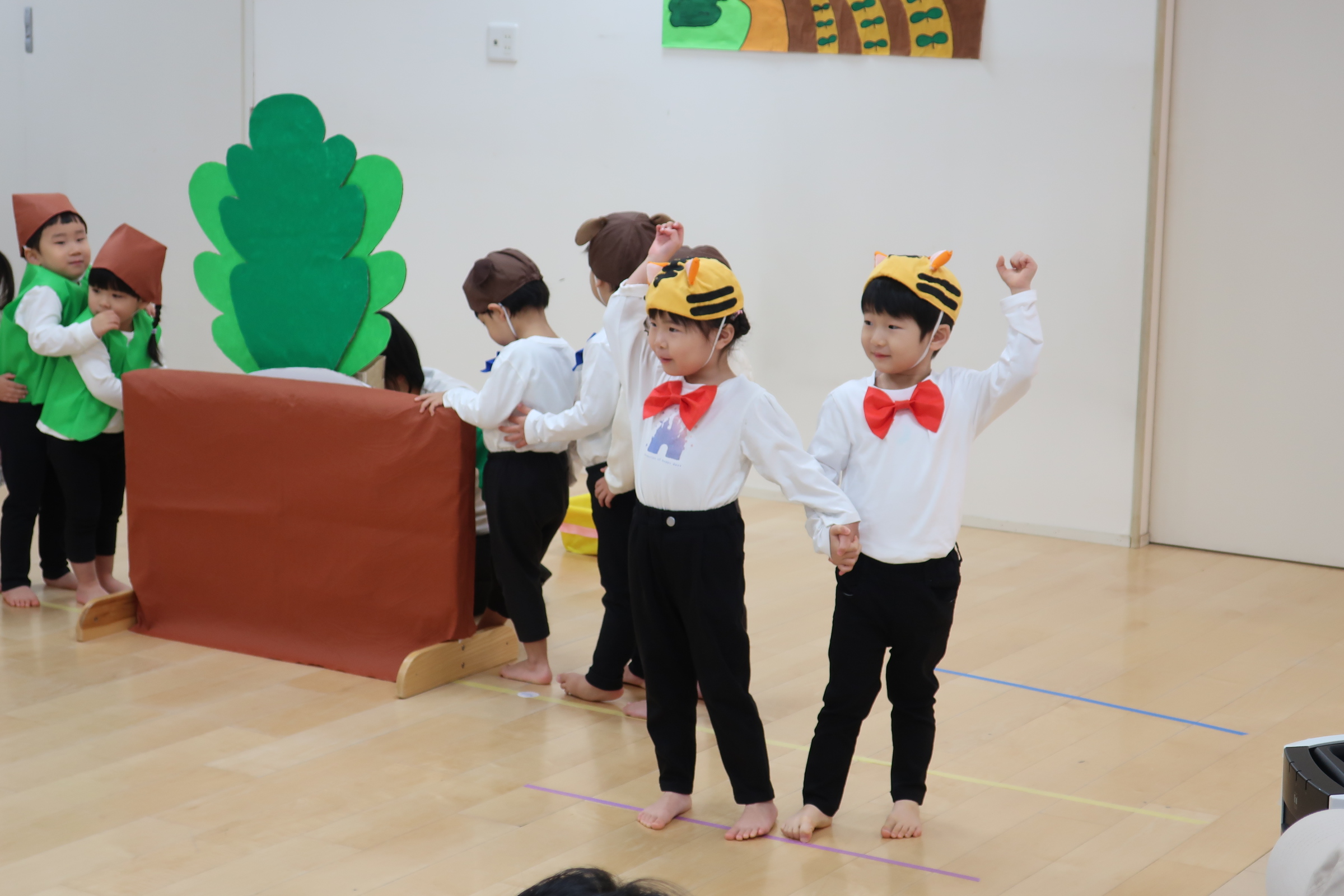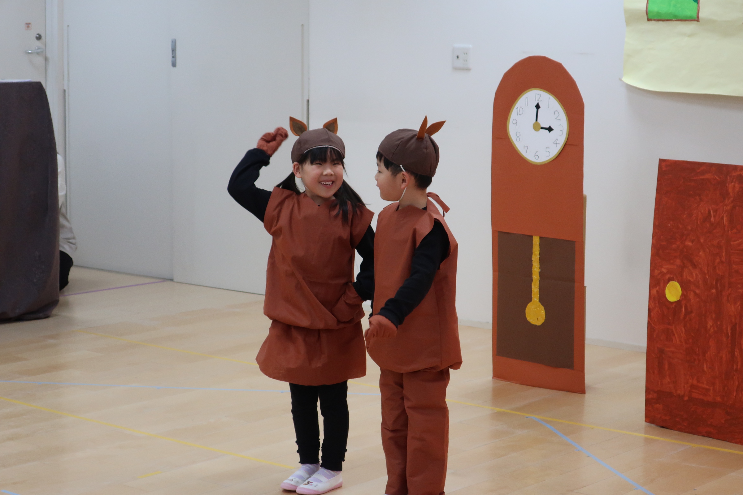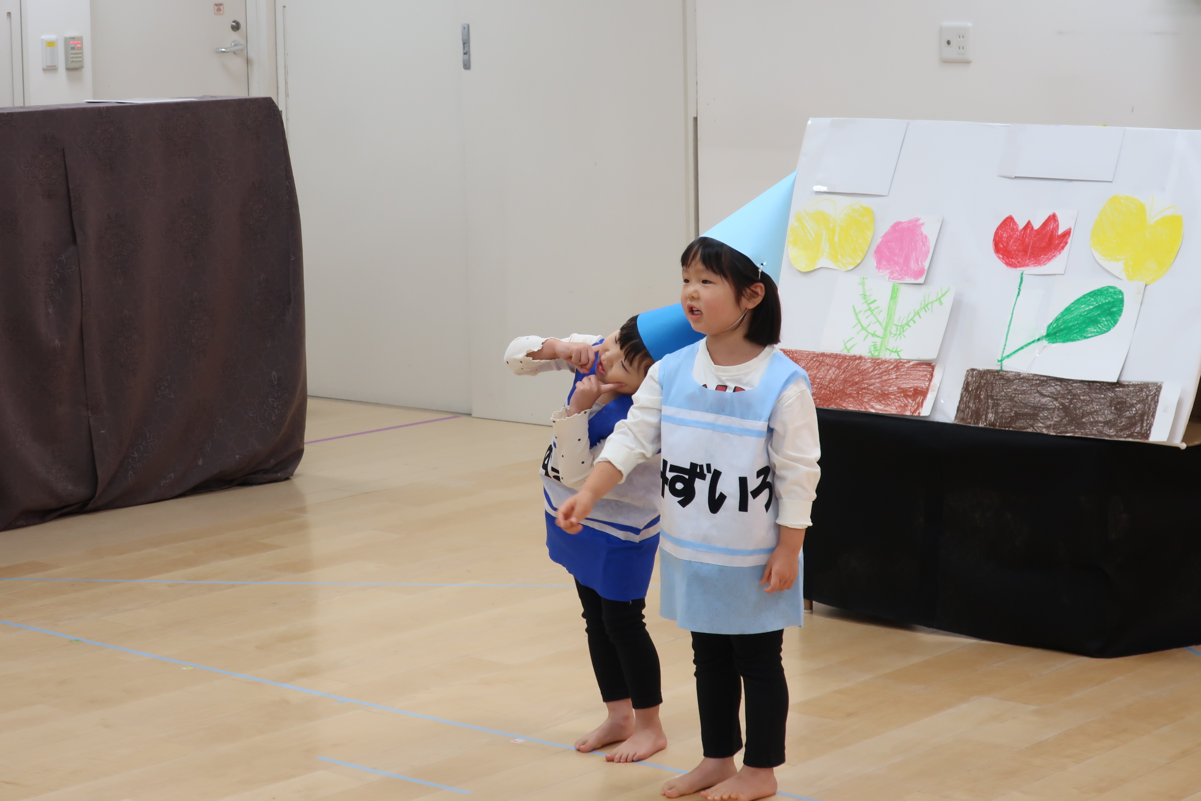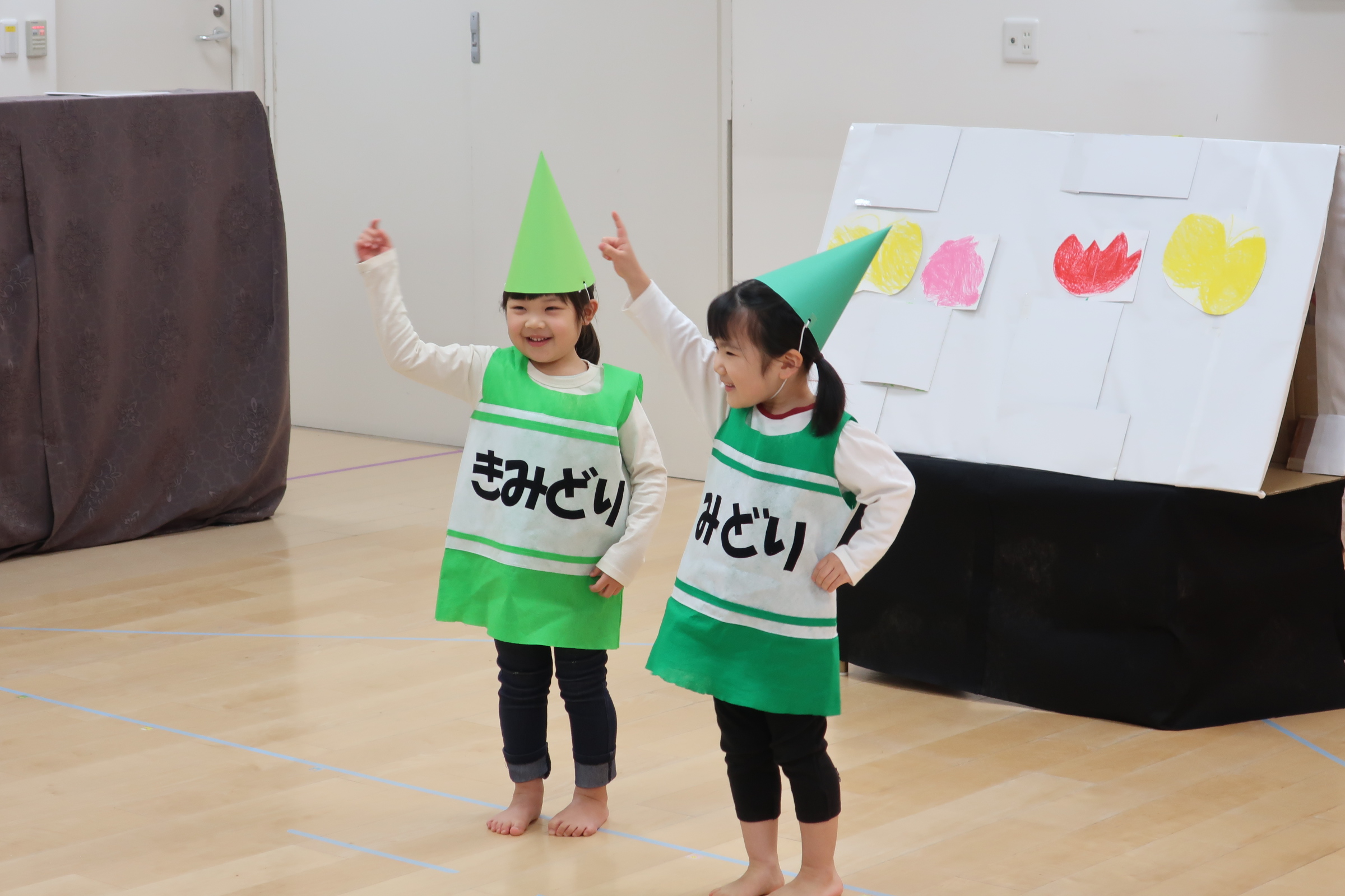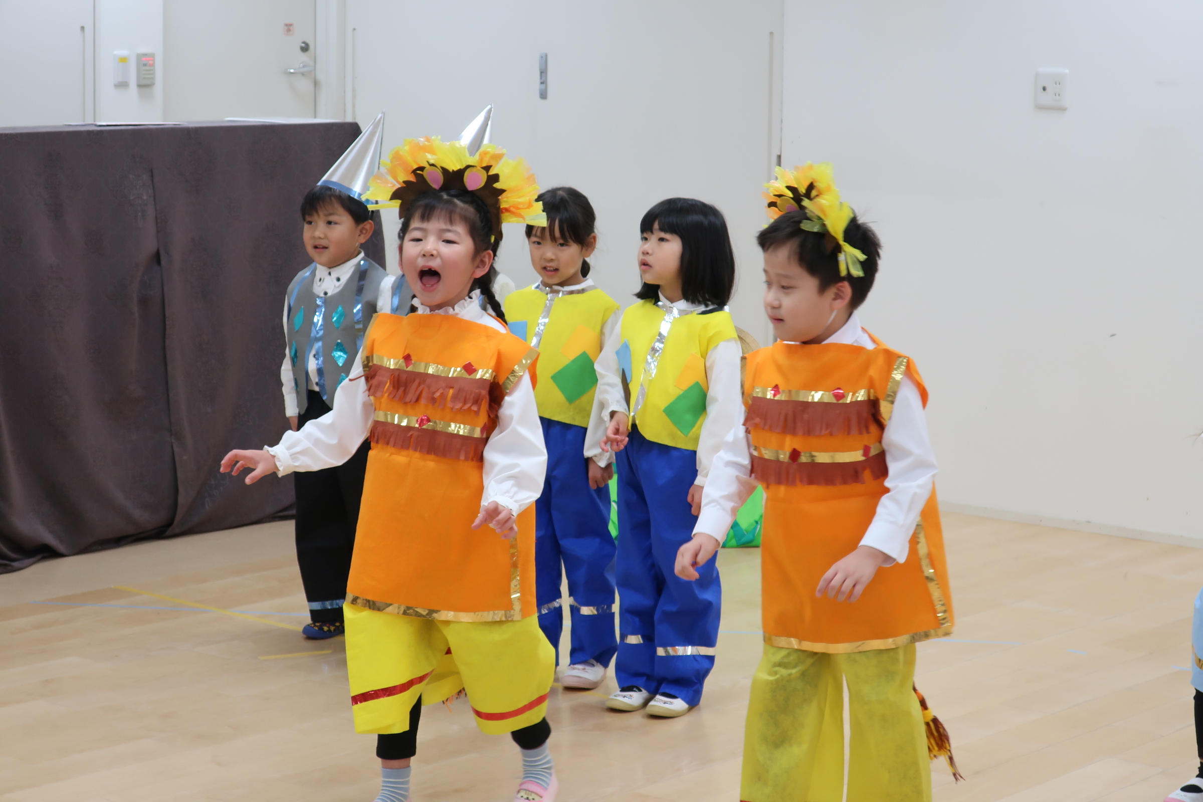 緊張しながらも、役になりきったり、友だちと歌をうたったり…表現遊びを楽しみました。